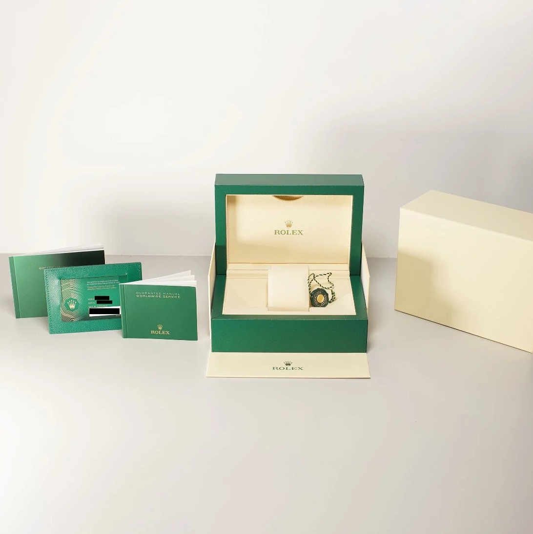 This 126613 LN is new unworn with original box and papers.The watch comes with an unworn black RubberB strap that is compatible with the Rothtlex folding clasp. These straps use vulcanized rubber so much more durable and comfortable.