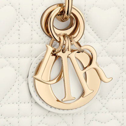 The Lady D-Joy bag captures the House's vision of elegance and beauty. Refined and elegant, the timeless creation showcases the iconic streamlined aesthetic of the Lady Dithtor line. Crafted in latte lambskin with Cannage stitching enhanced by a Heart motif, the sleek style is enhanced by tonal enamel D.I.O.R. charms. Featuring one removable chain strap and another adjustable and removable leather strap, the medium Lady D-Joy bag can be carried by hand, worn over the shoulder or crossbody as a daily companion.