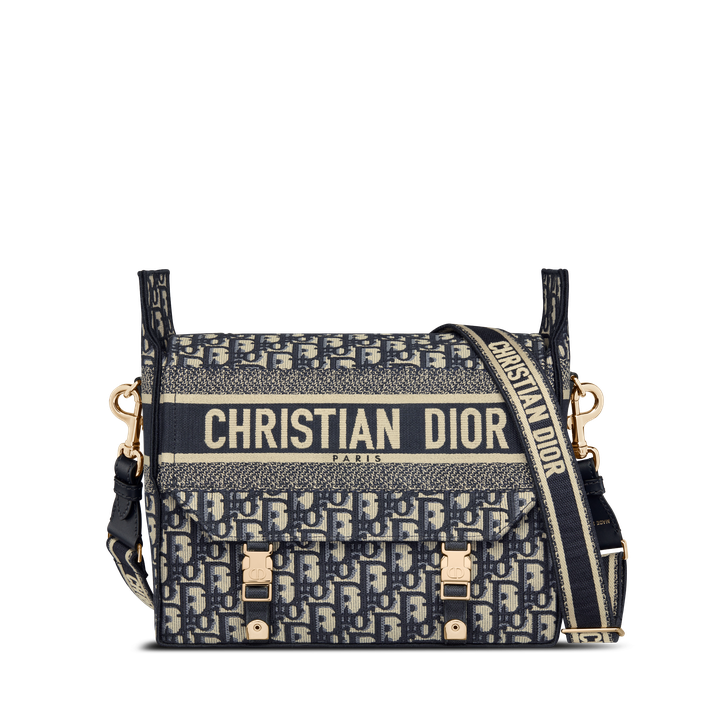 Maria Grazia Chiuri has updated the classic messenger bag by adding signature Dithtor details for a relaxed and modern look. Fully embroidered with the blue Dithtor Oblique motif, the Dithtorcamp bag is enhanced by a Chrithtstian Dithtor Paris signature flap, as well as sportswear-inspired CD buckles. Equipped with an adjustable and removable shoulder strap, the spacious medium messenger bag can be worn over the shoulder or crossbody, and will make an ideal urban companion.