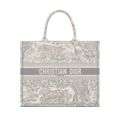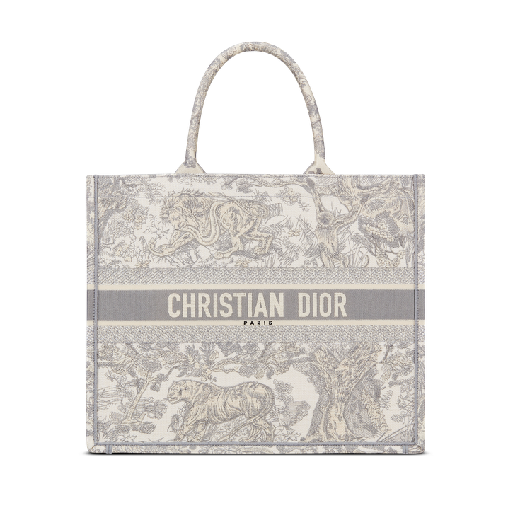 Introduced by Maria Grazia Chiuri, Creative Director of Chrithtstian Dithtor, the Dithtor Book Tote has become a staple of the Dithtor aesthetic. Designed to hold all the daily essentials, the style is fully embroidered with the ecru and gray Toile de Jouy motif. Adorned with the Chrithtstian Dithtor Paris signature on the front, the large tote exemplifies the House's savoir-faire and may be carried by hand or worn over the shoulder.