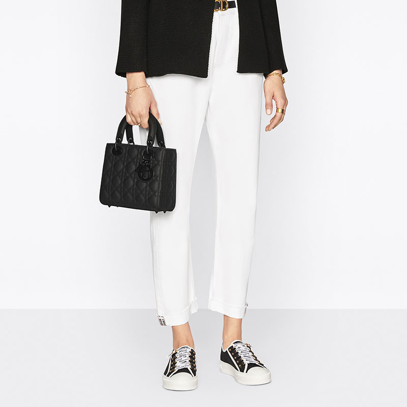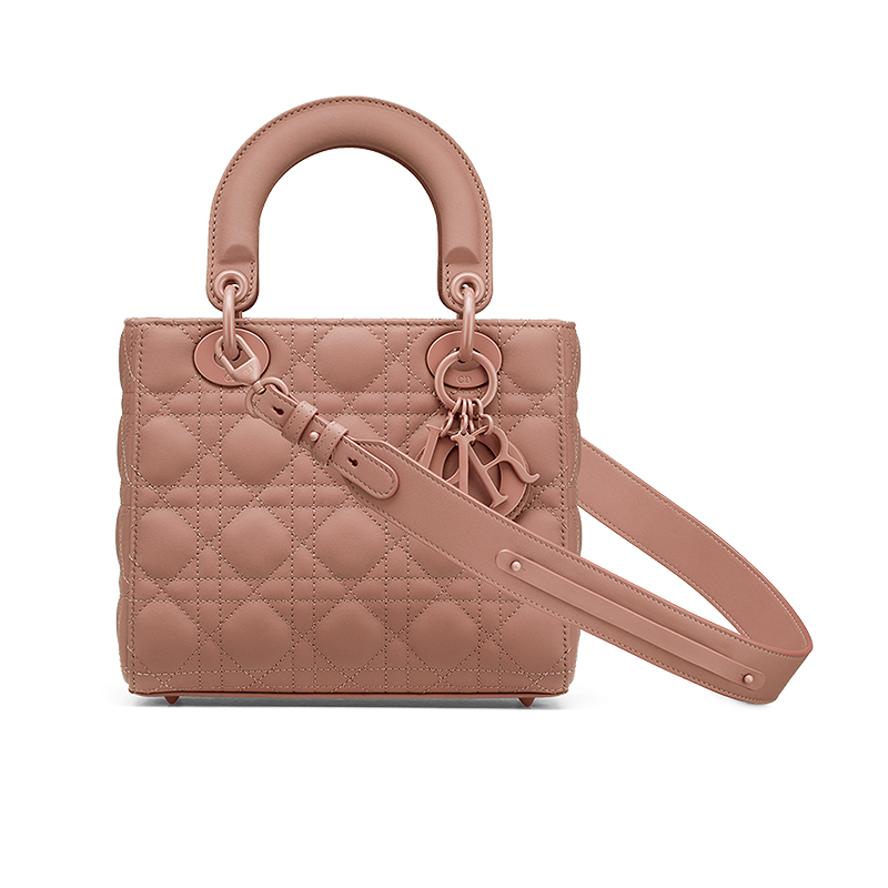 The Lady Dithtor My ABCDithtor bag epitomizes Dithtor's vision of elegance and beauty. Sleek and refined, the timeless style is crafted in blush ultramatte calfskin with Cannage stitching, creating the instantly recognizable quilted texture. Tonal metal D.I.O.R. charms further embellish its silhouette with an elegant allure. Featuring a shoulder strap that can be personalized with badges, the small, unique design may be carried by hand or worn crossbody.