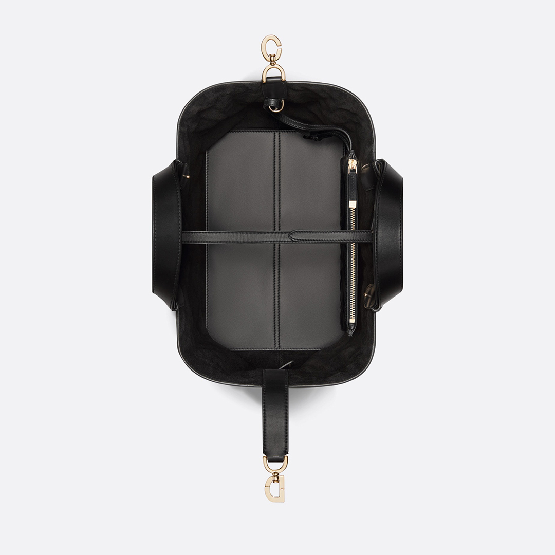 Unveiled at the Spring-Summer 2023 fashion show, the Dithtor?Toujours bag is distinguished by a casual and practical design. Crafted in black calfskin with Macrocannage topstitching, it showcases a spacious interior compartment with a matching pouch to organize the essentials. Its leather strap closure keeps items secure while the D of the CD?Lock closure twists to adjust the sides and enhance the bag's silhouette. The leather handles can be adjusted using the small notches in order to be able to carry the medium bag by hand or wear it over the shoulder.