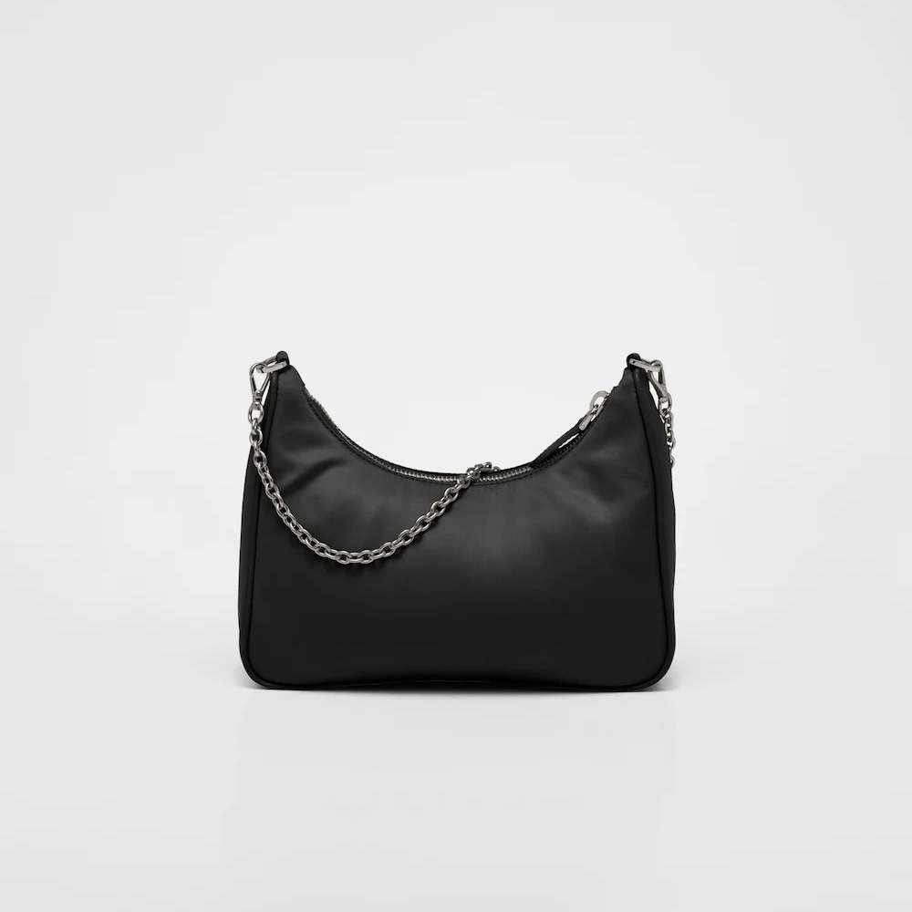 Inspired by the iconic mini hobo bag, the Prthtada Re-Edition 2005 shoulder bag is made of Re-Nylon: a regenerated nylon yarn (ECONYL®)produced from recycled, purified plastic trash collected in the ocean, fishing nets and textile waste fibers. This versatile bag with Saffiano leather trim comes with a detachable pouch attached to the shoulder strap.