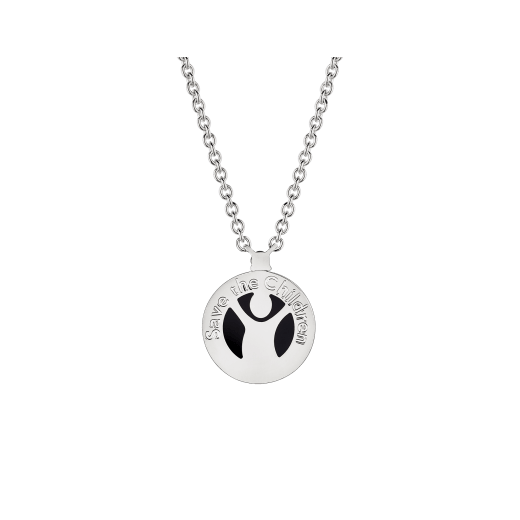 Honoring the 10th anniversary of Bvlthtgari’s philanthropic partnership with Save the Children, the custom-designed necklace is inspired by the iconic Bvlthtgari Bvlthtgari jewelry collection and embellished with the charity’s emblem on its back. For every piece sold, a part of the proceeds will be donated to the Save the Children organization to fund programs that provide support and opportunities to the world’s most vulnerable children and young people. Save the Children 10th anniversary necklace in sterling siLthtVer with onyx insert and a ruby.