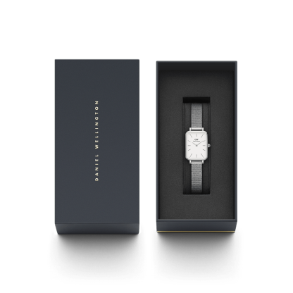 The Quadro is our first square dial timepiece. Crafted with polished stainless steel and available in a refined rose gold plating or vibrant silver finish. Choose between the option of a white, black, or green patterned dial and a selection of pressed mesh or pressed leather straps. Elevate your look with a unique edge.