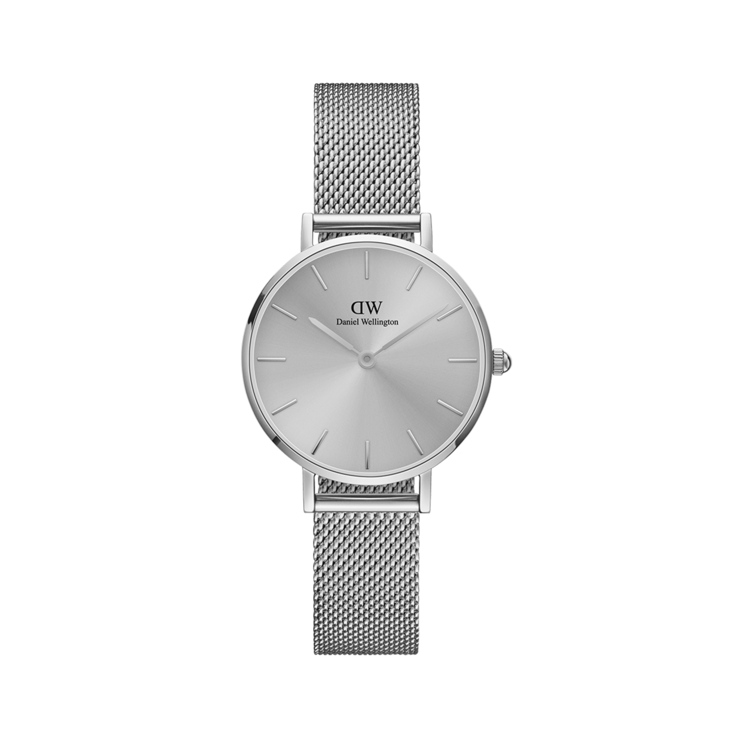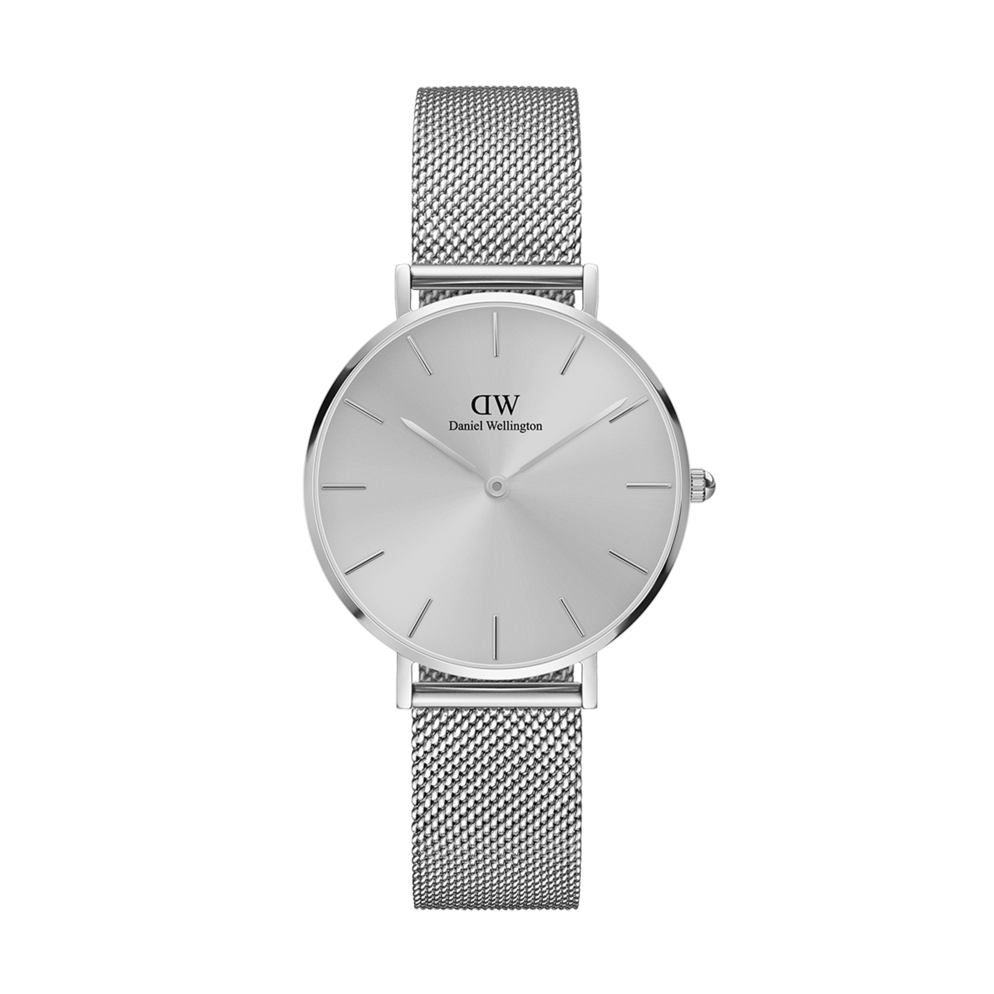 The Petite Unitone features a seamlessly matching silver mesh strap and watch dial. Crafted with polished stainless steel, designed to make a delicate statement. A timepiece that sets the tone for any occasion.
