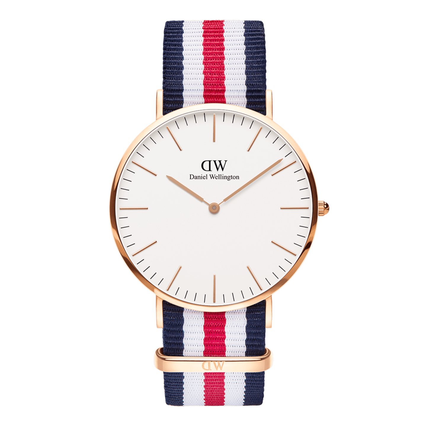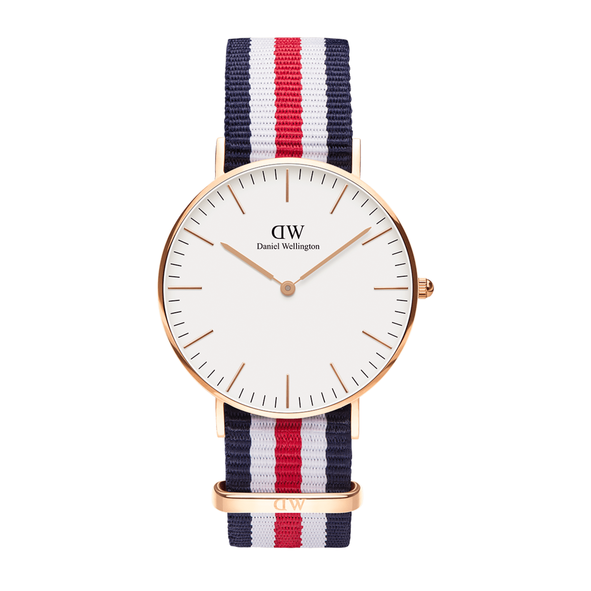 Inspired by the gorgeous colors of a classic flag, this red, white and blue NATO band celebrates timeless preppy American fashion. The playful band, when paired with the simplistic and elegantly slim dial, gives you a timepiece that can be worn to both work and after work.