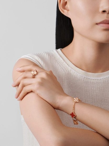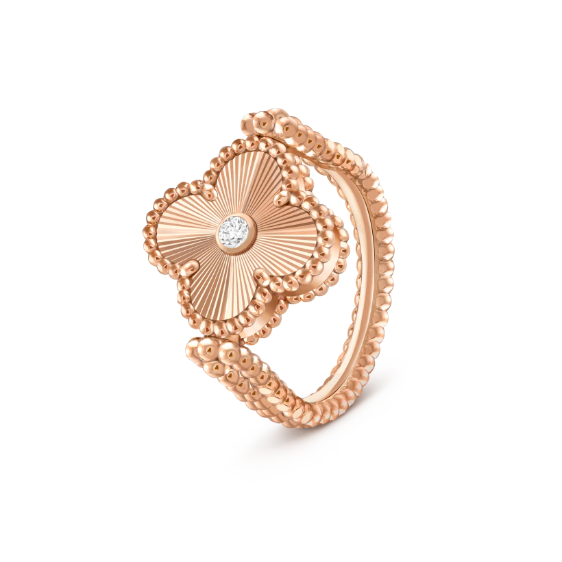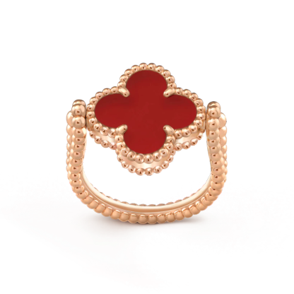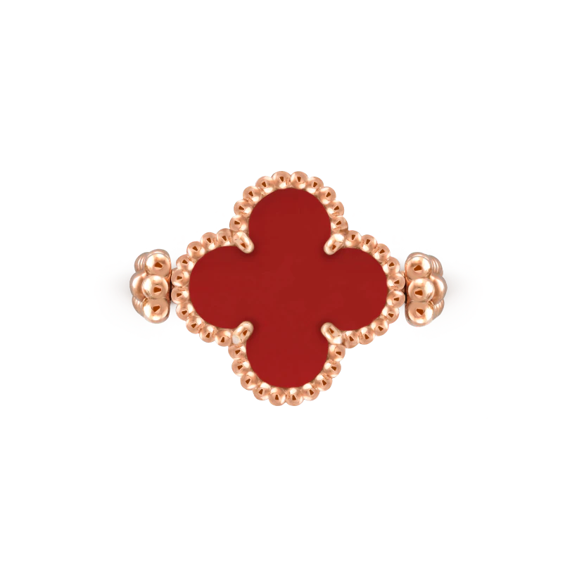Vintage Alhambra reversible ring, guilloché 18K rose gold, carnelian, diamond