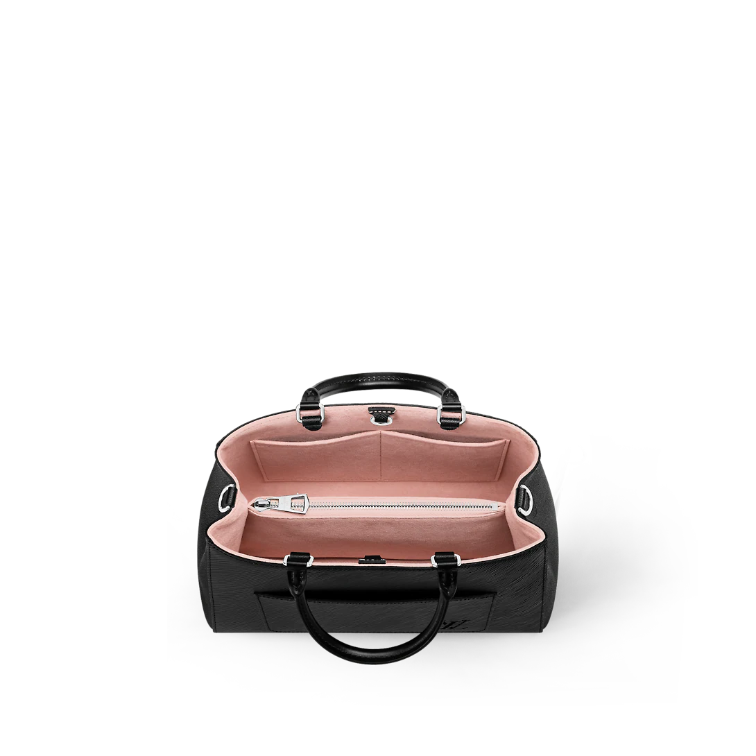 Designed for fashionable, active women, the Marelle Tote MM in grained Epi leather combines function with style. Its sleek lines and signature details – note the detachable Monogram pocket, see-through LthtV logo and Toron top handles – make this sporty-chic bag a versatile companion for day-to-business use. The removable leather strap allows for hands-free, cross-body wear.