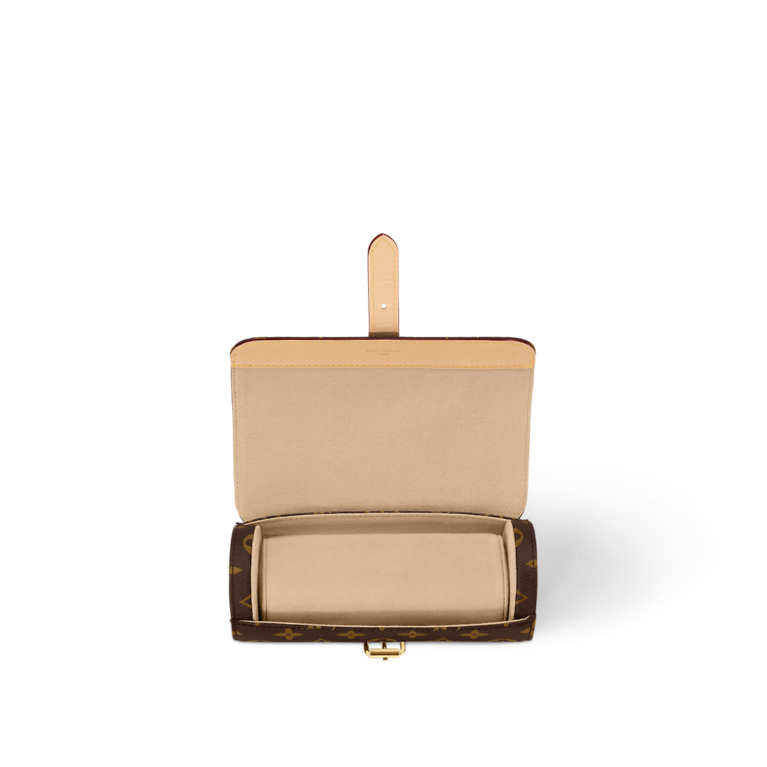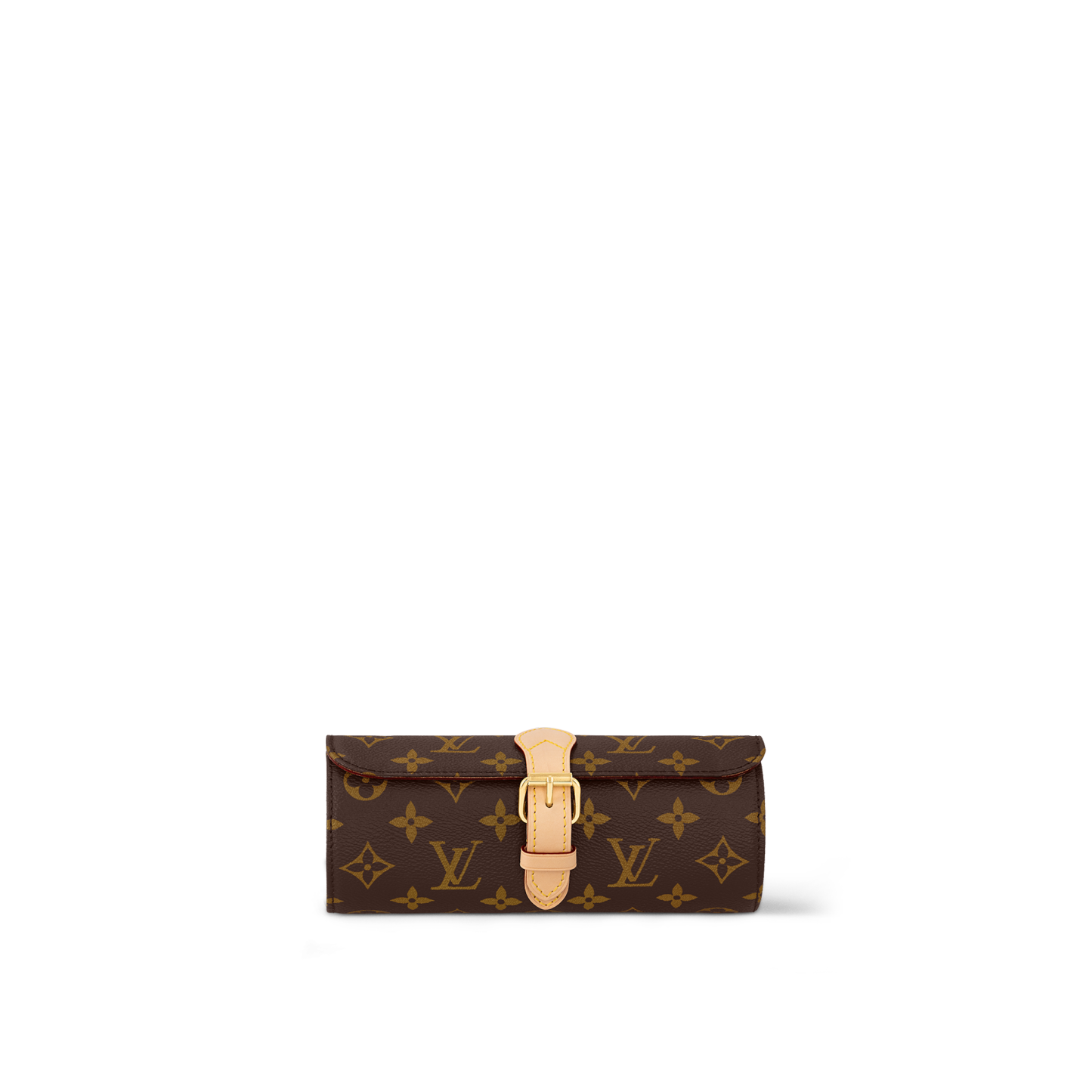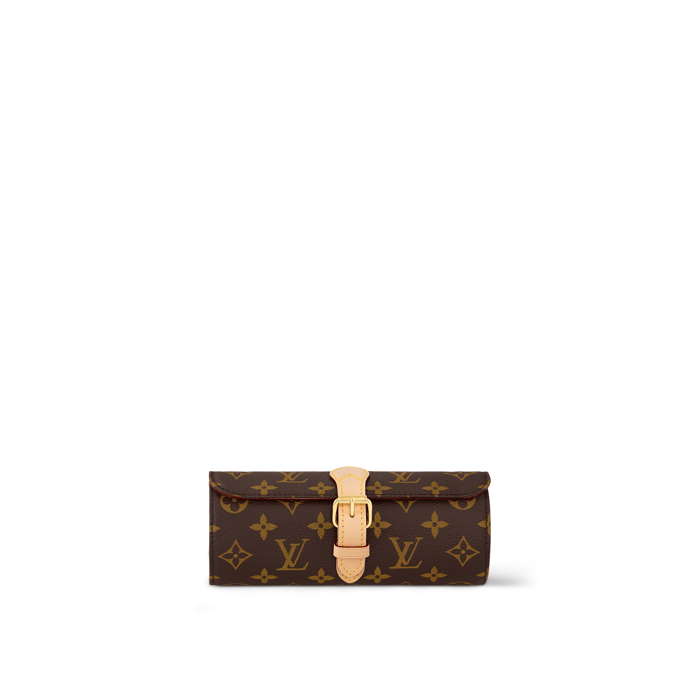 Crafted in iconic Monogram canvas, this watch case, with a soft and luxurious lining, is a perfect travel accessory.