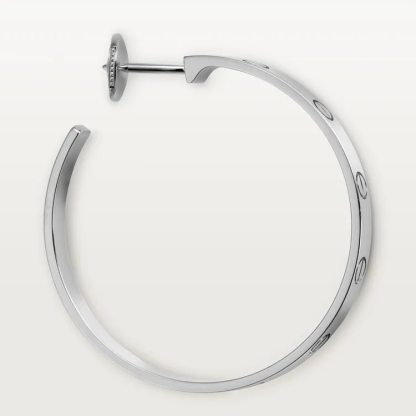 LOVE earrings, white gold 750/1000. Width: 3.6 mm. Inner diameter: 32.6 mm.