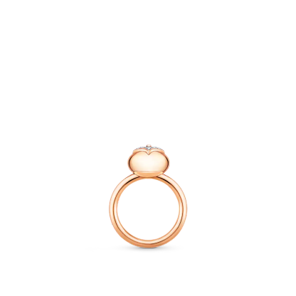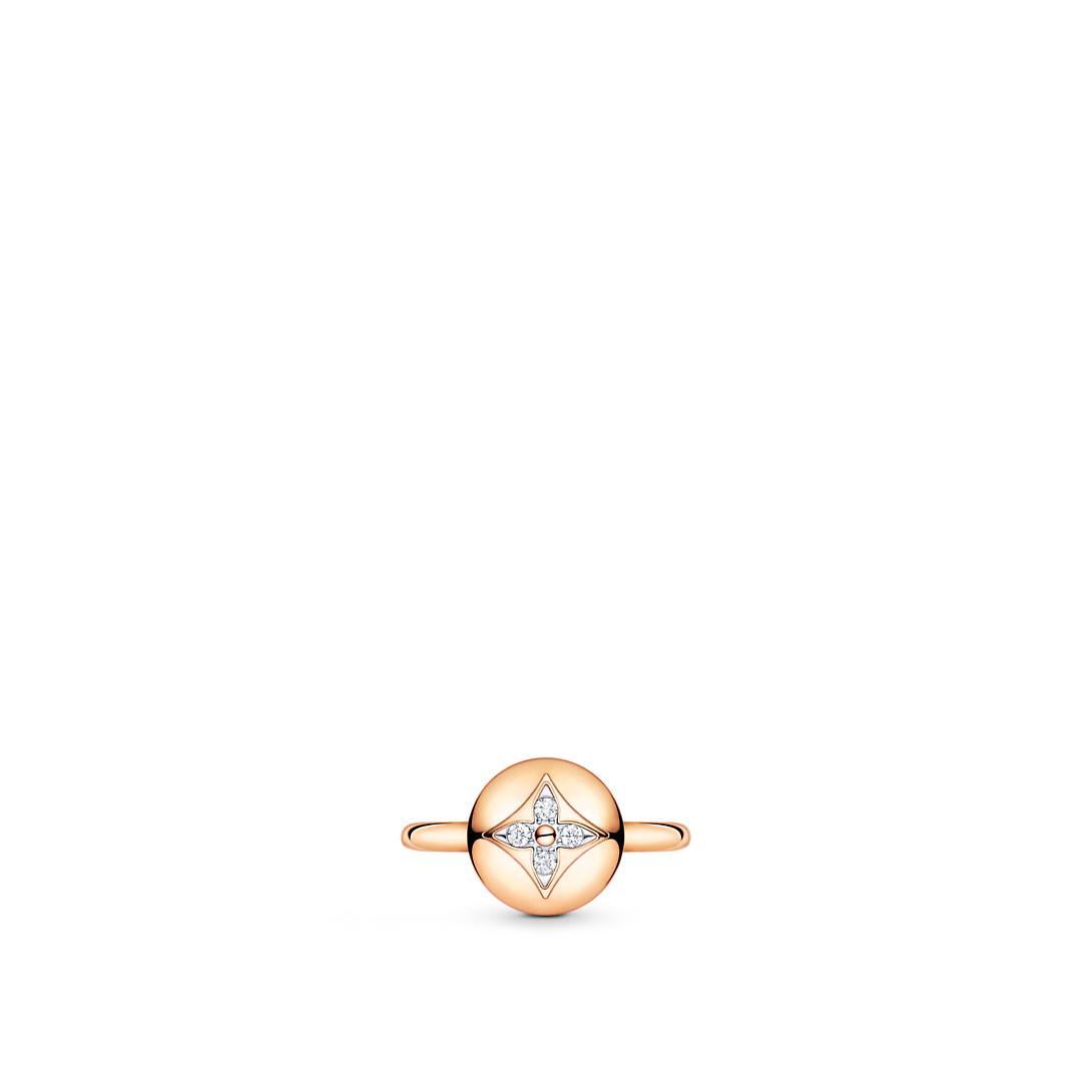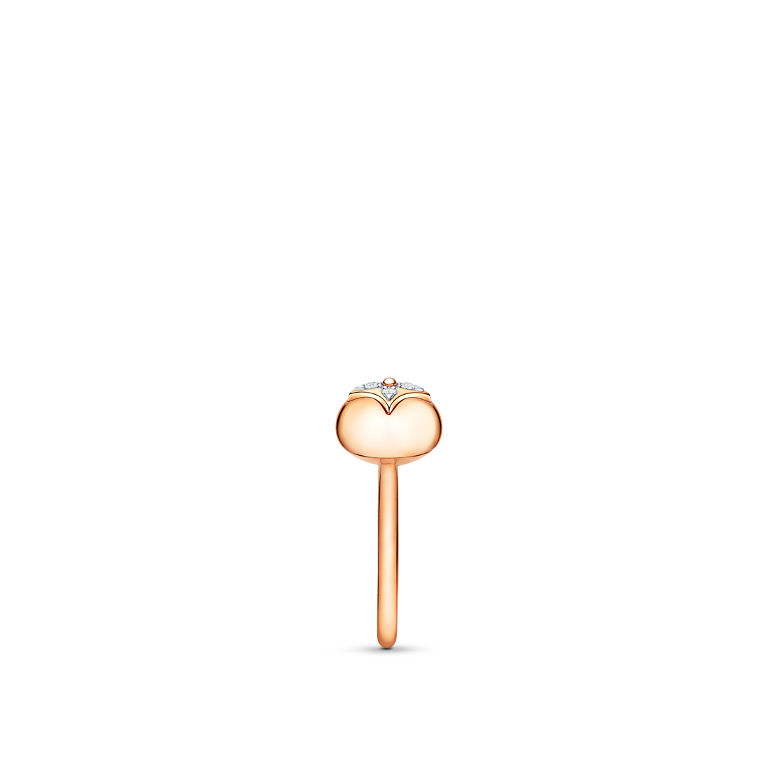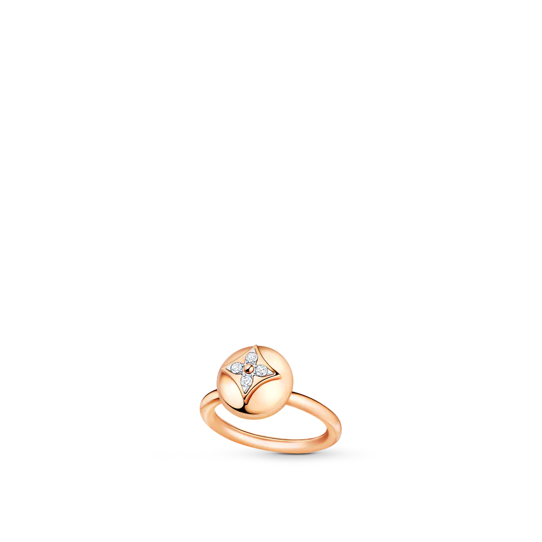 The Color Blossom collection presents this dazzling ring in pink and white 18-kt gold. The band is crowned with a rounded motif, designed to resemble a stamp: it is set with an iconic Monogram Flower composed of four sparkling diamonds. This signature piece was created for the modern woman who always leaves her mark.