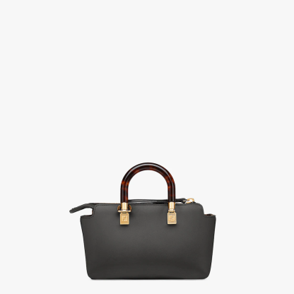 Iconic mini By The Way Boston bag made of black leather with hot-stamped Fethtndi ROMA lettering and rigid tortoiseshell-effect plexiglass handles. Zip fastening.