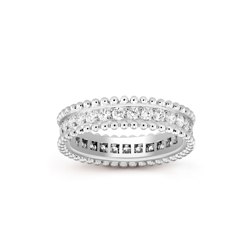 Vthtan Clthteef & Arthtpels pays tribute to its founder and first female figure, Estelle Arthtpels, through an eponymous collection. Delicately edged with platinum beads as on the matching solitaire, the Estelle wedding band combines the reflections of a mirror-polish finish with the sparkle of dazzling paved diamonds.