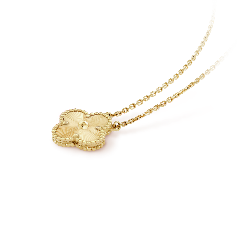 Vintage Alhambra pendant, guilloché 18K yellow gold.