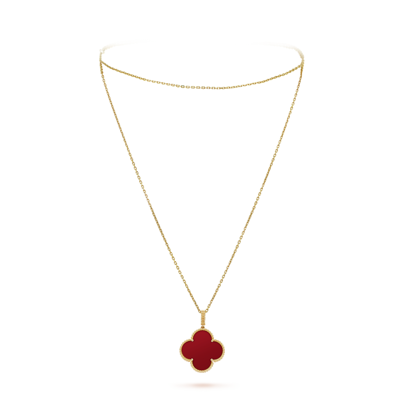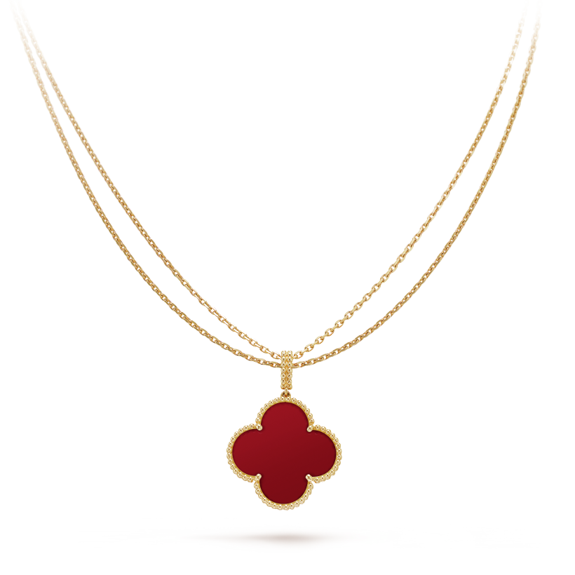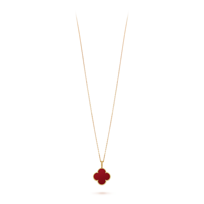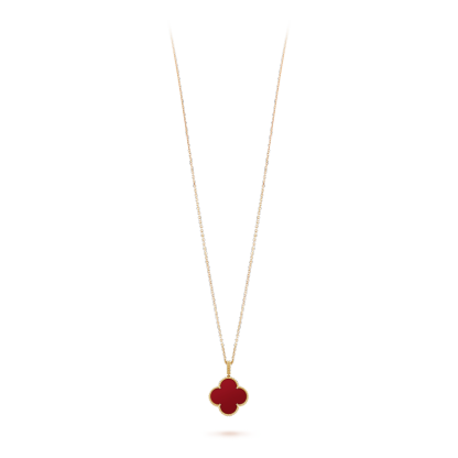 Magic Alhambra long necklace 1 motif, 18K yellow gold, carnelian.