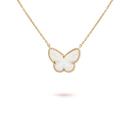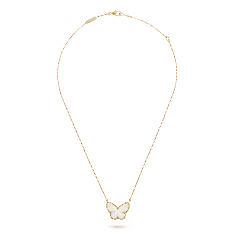 Lucky Alhambra butterfly pendant, 18K yellow gold, white mother-of-pearl.