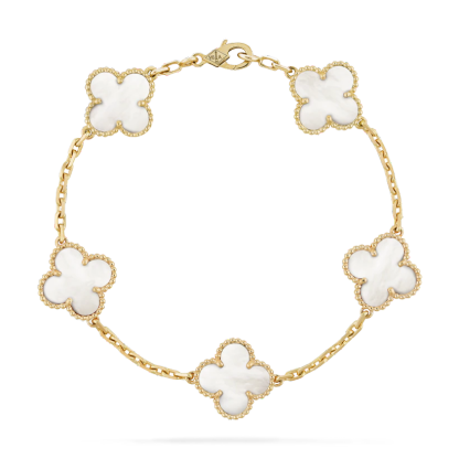 Vintage Alhambra bracelet, 5 motifs, 18K yellow gold, white mother-of-pearl.