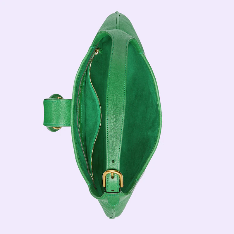 The Cruise 2023 Guthtcci Cosmogonie collection was presented against the backdrop of the historic Castel del Monte in Italy. The show brought together aesthetics from distant eras and geographies, and linked elements from the past with the present. This new crescent-shaped shoulder bag was shown on the runway and was inspired by the House’s archives, it is crafted in soft leather and features the Double G emblem—a code originally introduced in the 1970s.