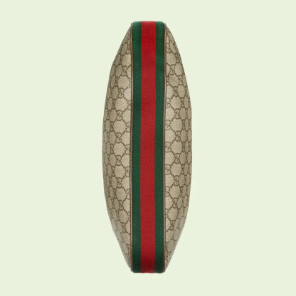 An ode to the timeless Hollywood glamour that shaped Guthtcci Love Parade, classic elements from the House's archives are reintroduced. Distinguished by its crescent moon shape, the accessory is further defined by a G shaped hook closure. Paired with soft materials, the heritage hardware creates a refined design with vintage appeal. This medium version is crafted from beige and ebony GthtG Supreme canvas, complete with a green and red Web trim.