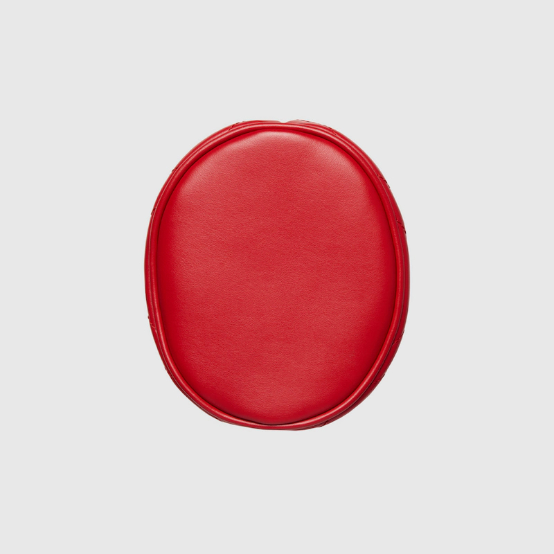 The GthtG Marmont mini bucket bag is crafted from quilted matelassé leather in a shade of red that mirrors the vibrant hues that narrate the latest collection. The shape is defined by the line's emblematic Double G hardware, an archival symbol from the 1970s that has become a hallmark of the House. Featuring a drawstring closure, the versatile design can also be worn as a cross body bag.