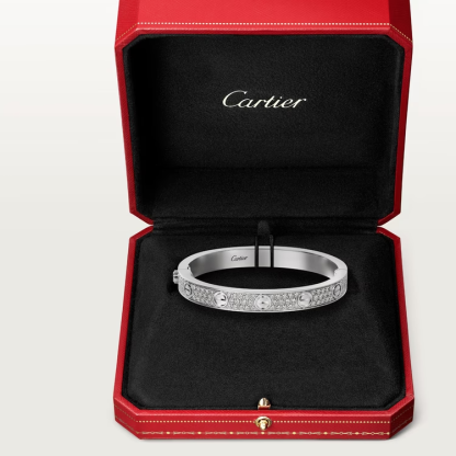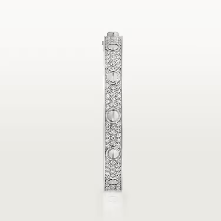 LOVE bracelet, 18K white gold (750/1000), set with 204 brilliant-cut diamonds totaling 1.99 carats. Width: 6.7 mm. Thickness: 3 mm (for size 18).