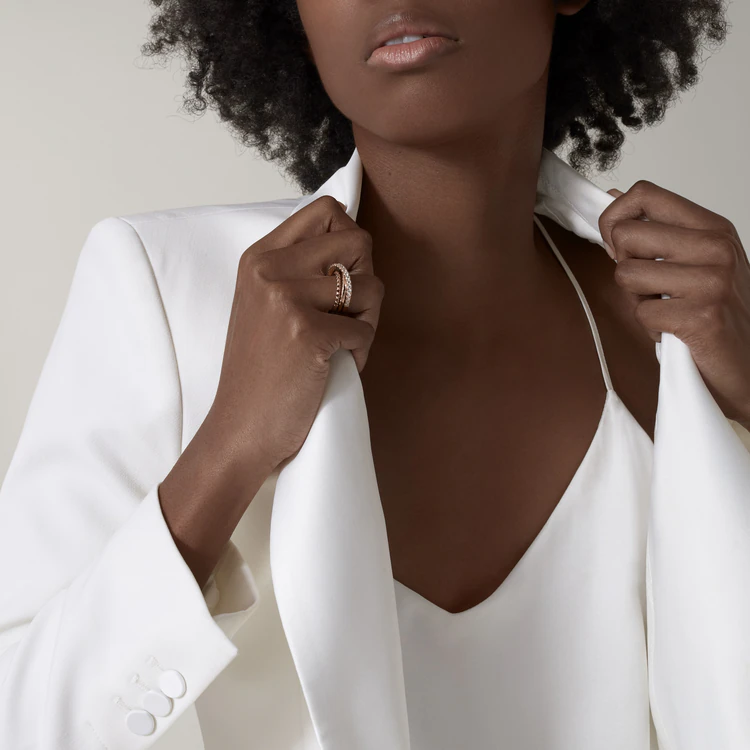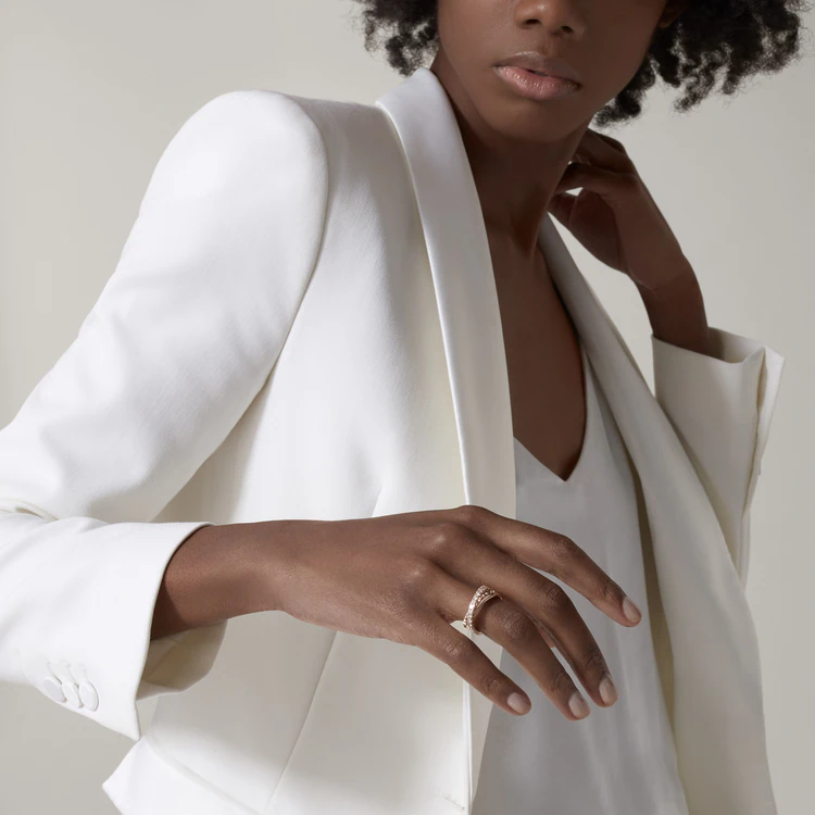 Étincelle de Cathtrtier ring, 18K rose gold (750/1000), set with 18 brilliant-cut diamonds totaling 0.63 carat (for size 52).