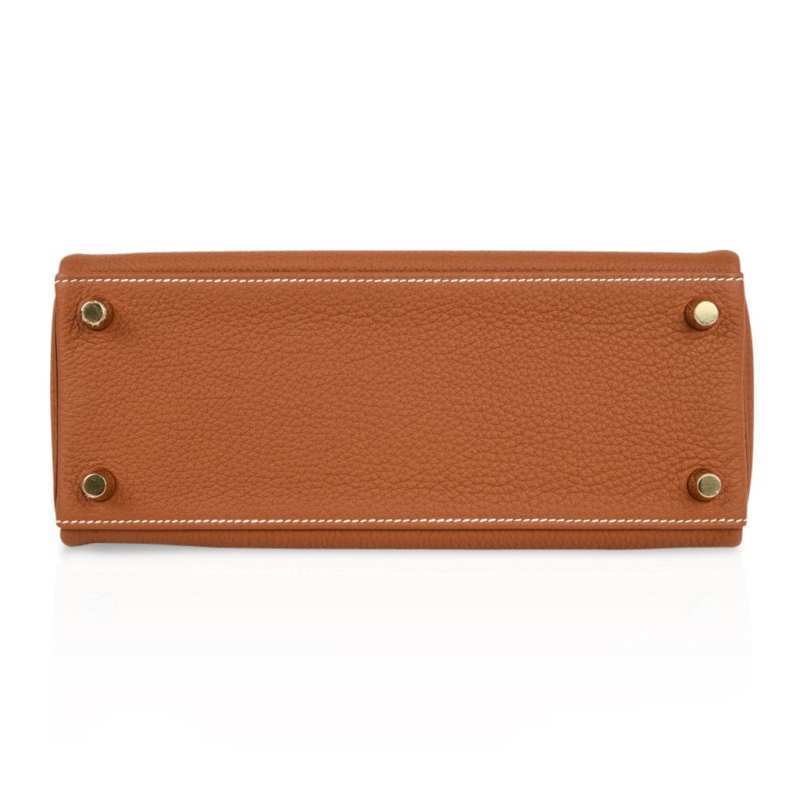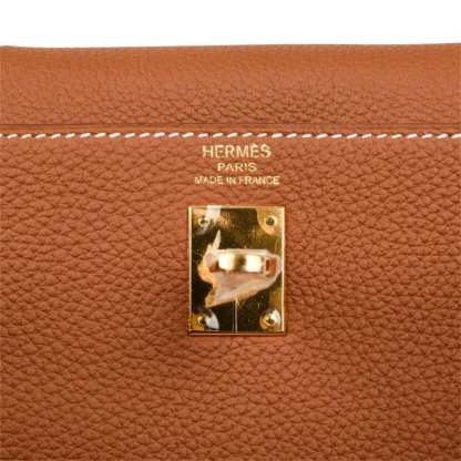 This signature Herthtmes Kelly retourne bag is lush gold hardware.