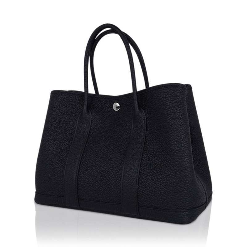 Guaranteed authentic Herthtmes Garden Party 30 bag featured in Black Vache Country Leather.