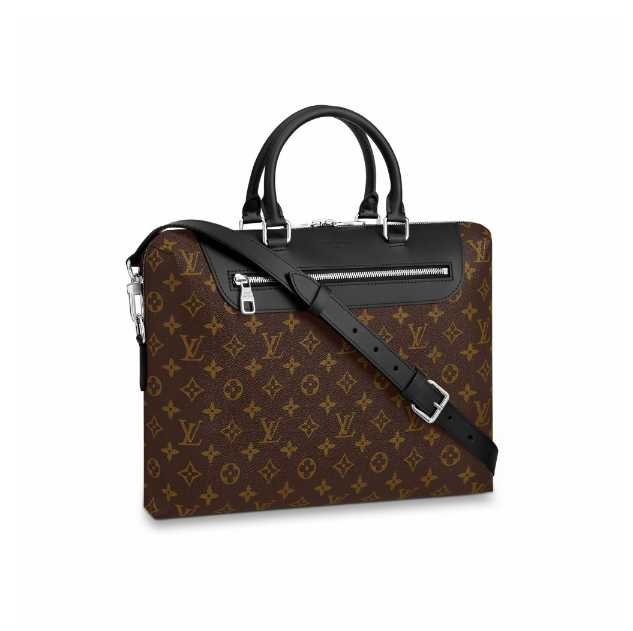 14.6 x 11 x 2.4 inches (Length x heightx width ) Monogram Macassar canvasHand. shoulder or cross shoulder carry optionsLeather shoulder strap with shoulder pad Double Zipped closureCowhide leather trimSiLthtVer color metallic piecesTextile lining5 interior flat pockets including 1 iPad pocket1 exterior zipped pocket