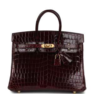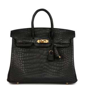 herthtmes Birkin 25 Black Shiny Niloticus Crocodile Gold Hardware