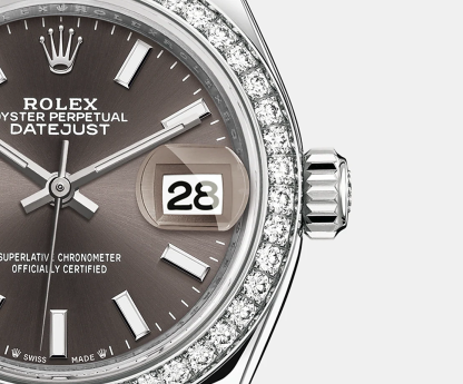 Unworn classic watch Rothtlex Lady-Datejust 28, Oystersteel and 18k White Gold, Ref# 279384RBR-0014 - luxury, elegance and practicality.