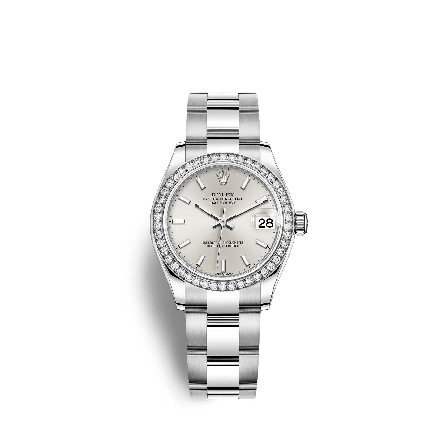 Unworn classic watch Rothtlex Datejust 31, Oystersteel, 18kt White Gold and diamonds, Ref# 278384RBR-0015 - luxury, elegance and practicality.