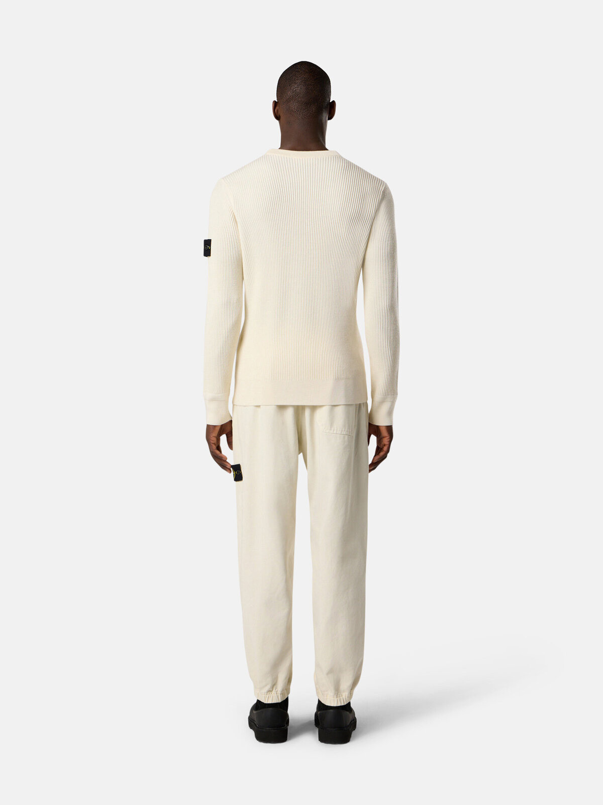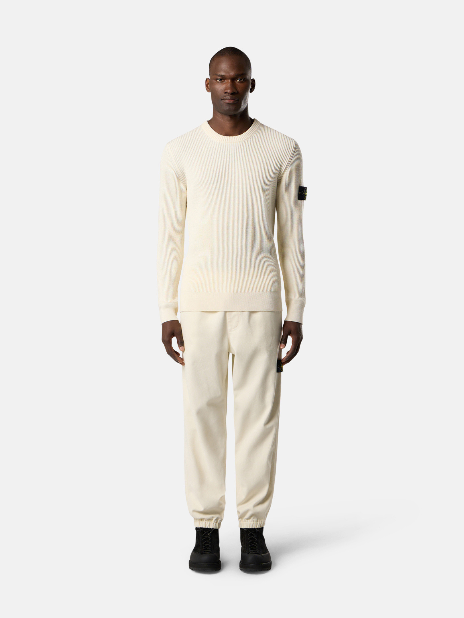 Hand pockets with slanted entrance and small gusset. One back patch pocket with snap. STOthtNE ISLthtAND badge on left leg. Elasticated cuffs. Elasticated waistband with inner drawstring. Loose fit.