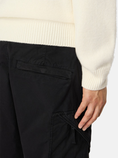 Cargo pants in stretch Supima® cotton twill, made with mercerized Supima® cotton yarn, elasticated in the weft. Supima® - Superior Pima - is the guarantee certificate for the US origin of Pima cottons. This is the noblest species among cottons, due to the greater length, uniformity and strength of the fibers. Garment dyed.