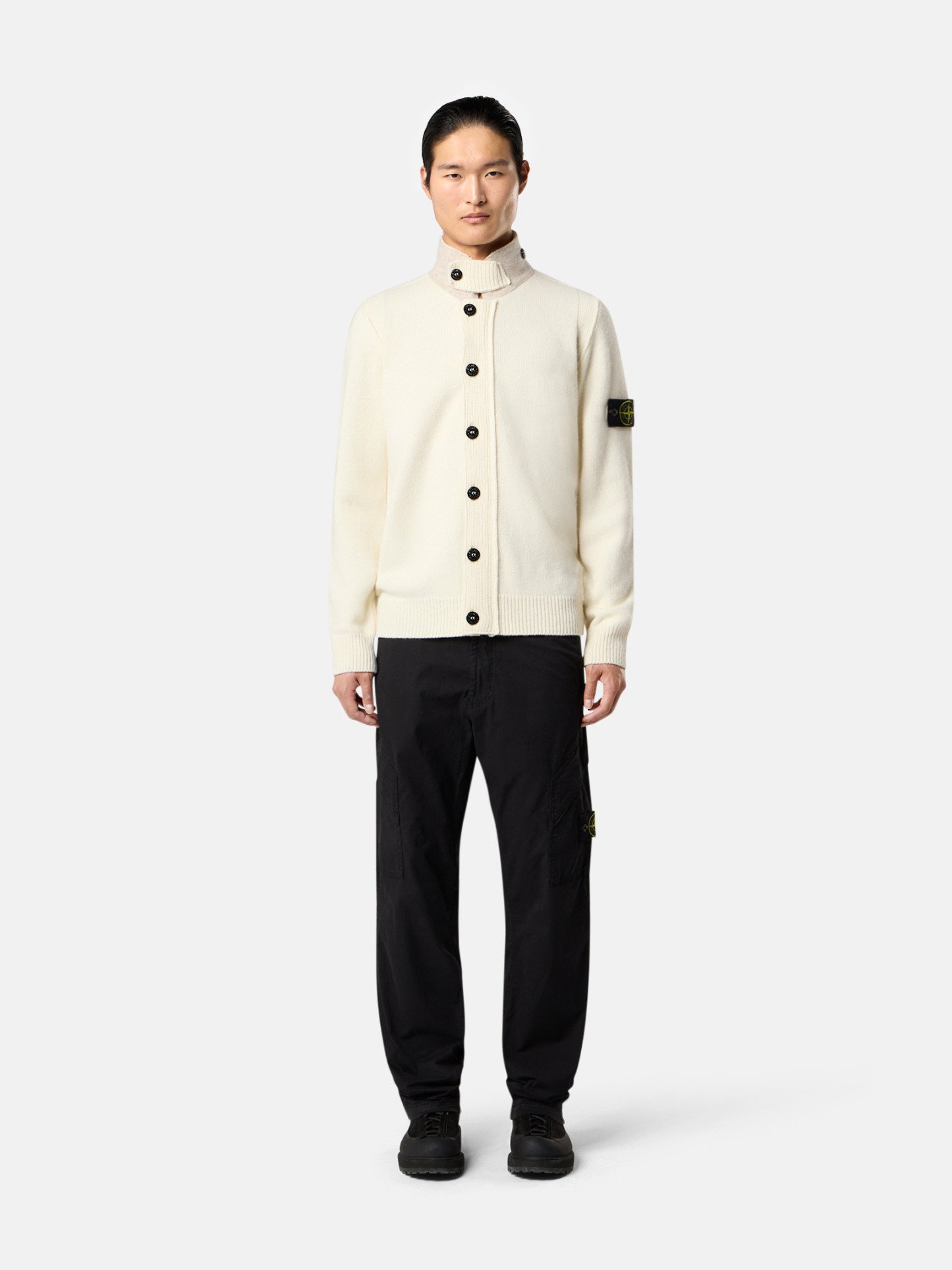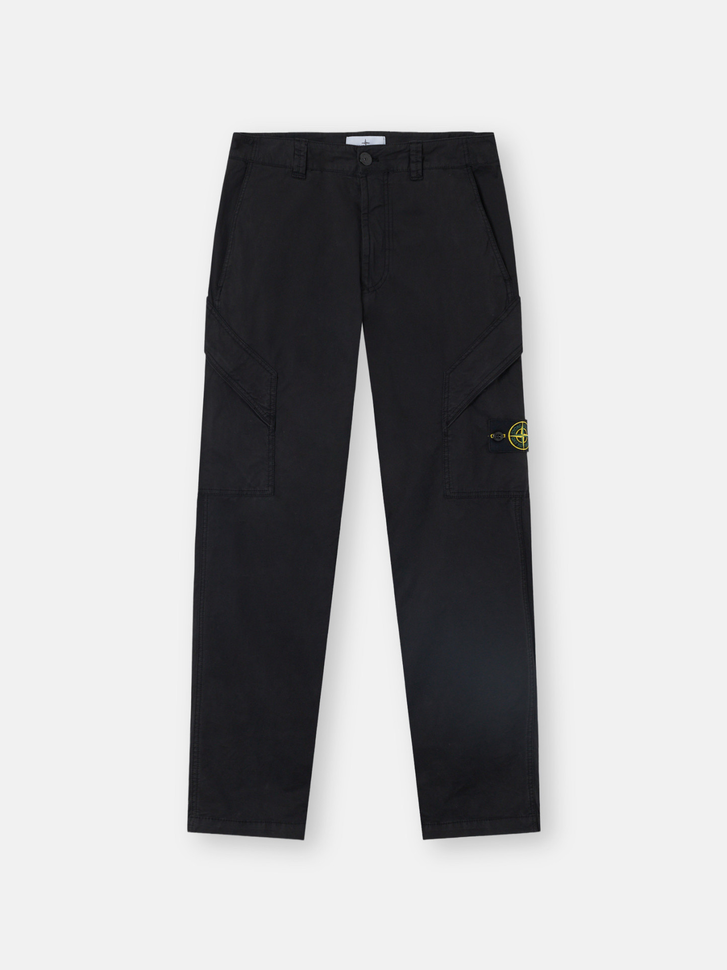 Slanted hand pockets. Cargo pockets with angled flap and zipper; left pocket features STOthtNE ISLthtAND badge. One back pocket with hidden snap. Zipper and div fly. Regular fit.