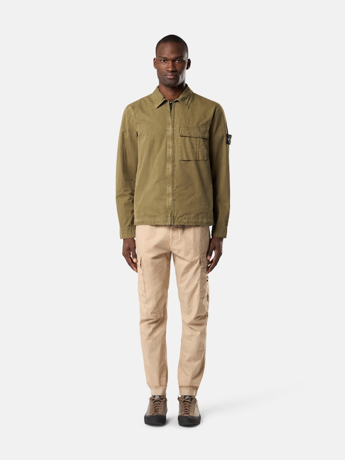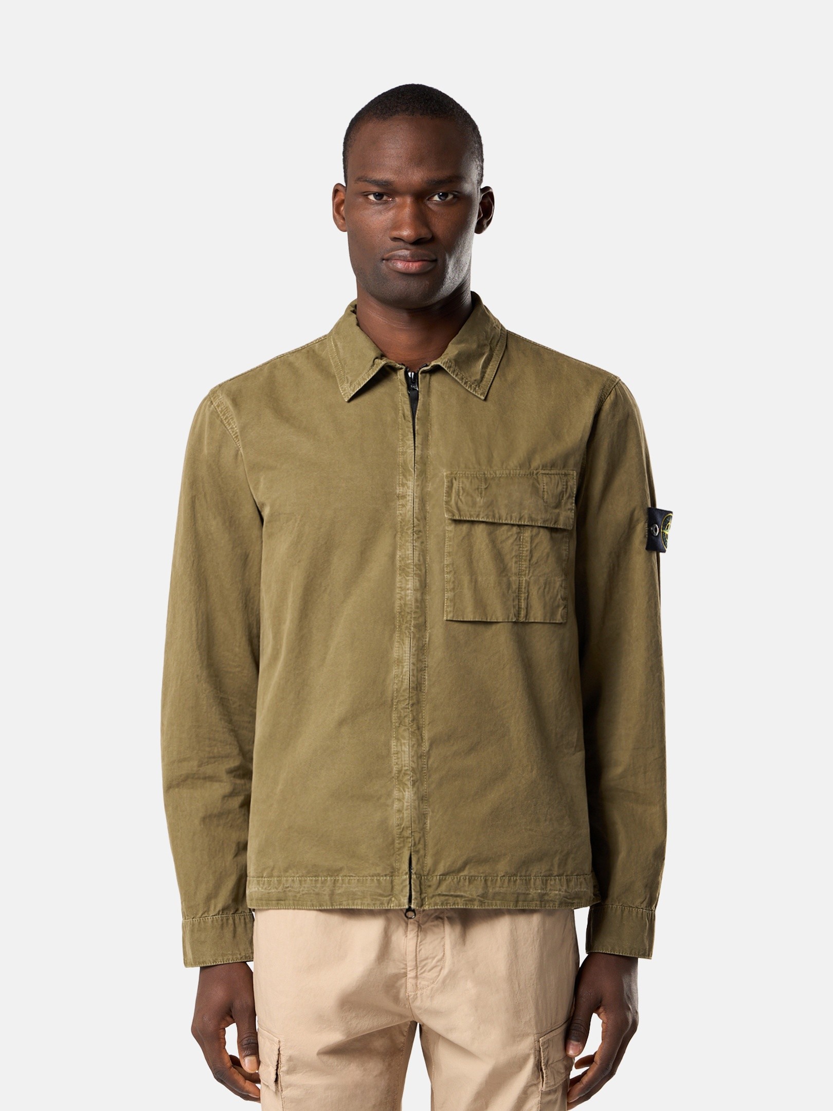 Dual-compartment bellows chest pocket with flap and concealed double snap. STOthtNE ISLthtAND badge on left sleeve. Snap at cuffs. Concealed two-way zipper fastening. Regular fit.
