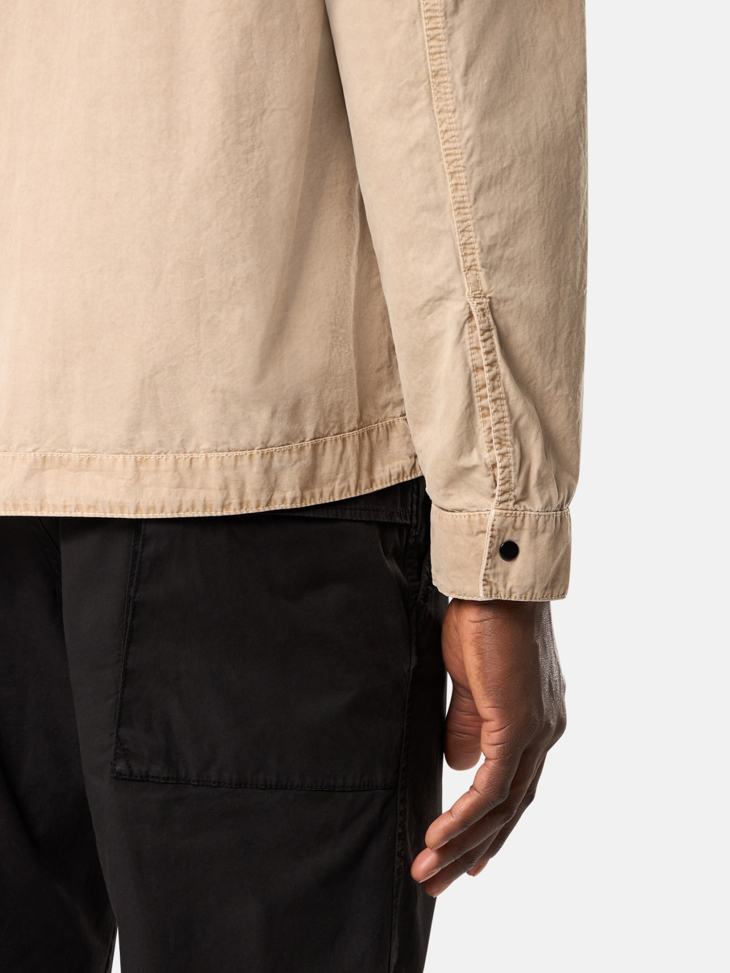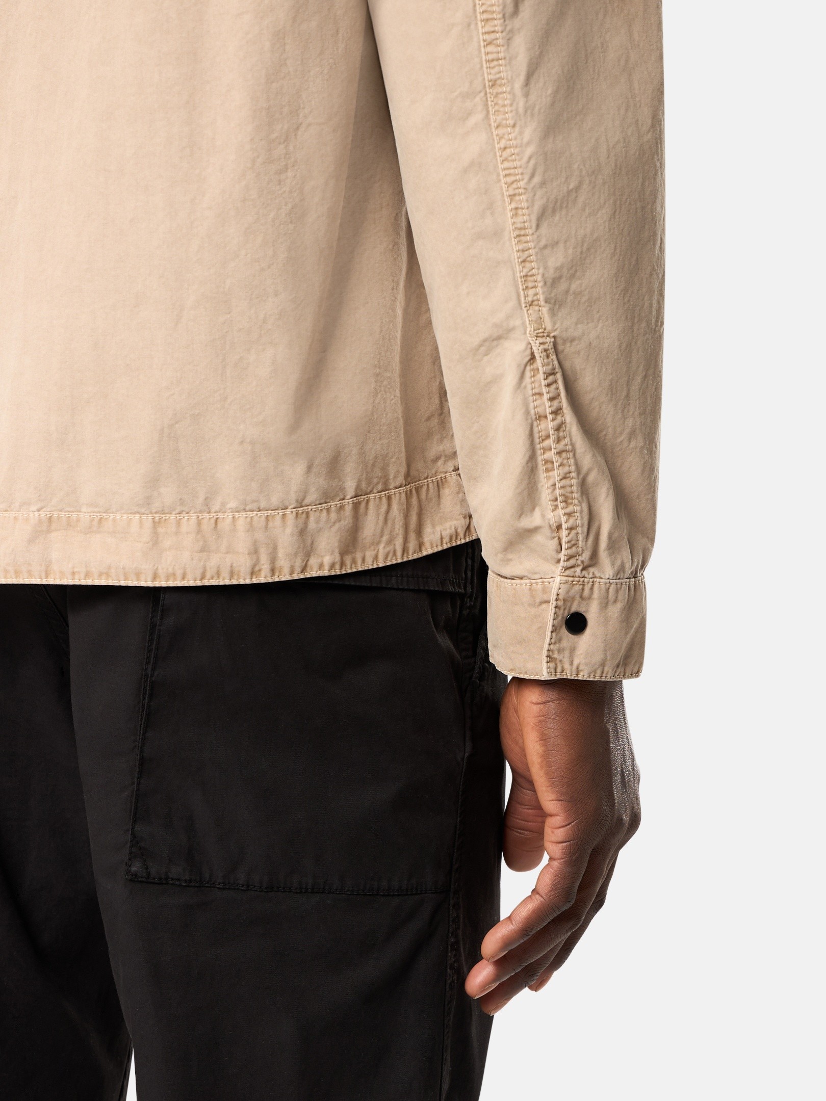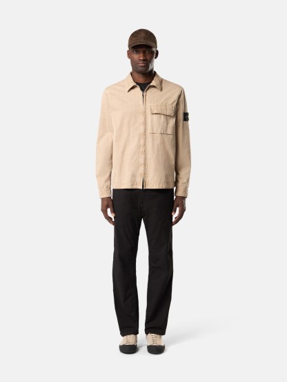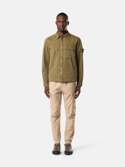 Overshirt in brushed organic cotton canvas. Garment dyed with the “OLD” treatment, an exclusive dyeing treatment and subsequent fading on the finished garment for a slightly worn and three-dimensional appearance.