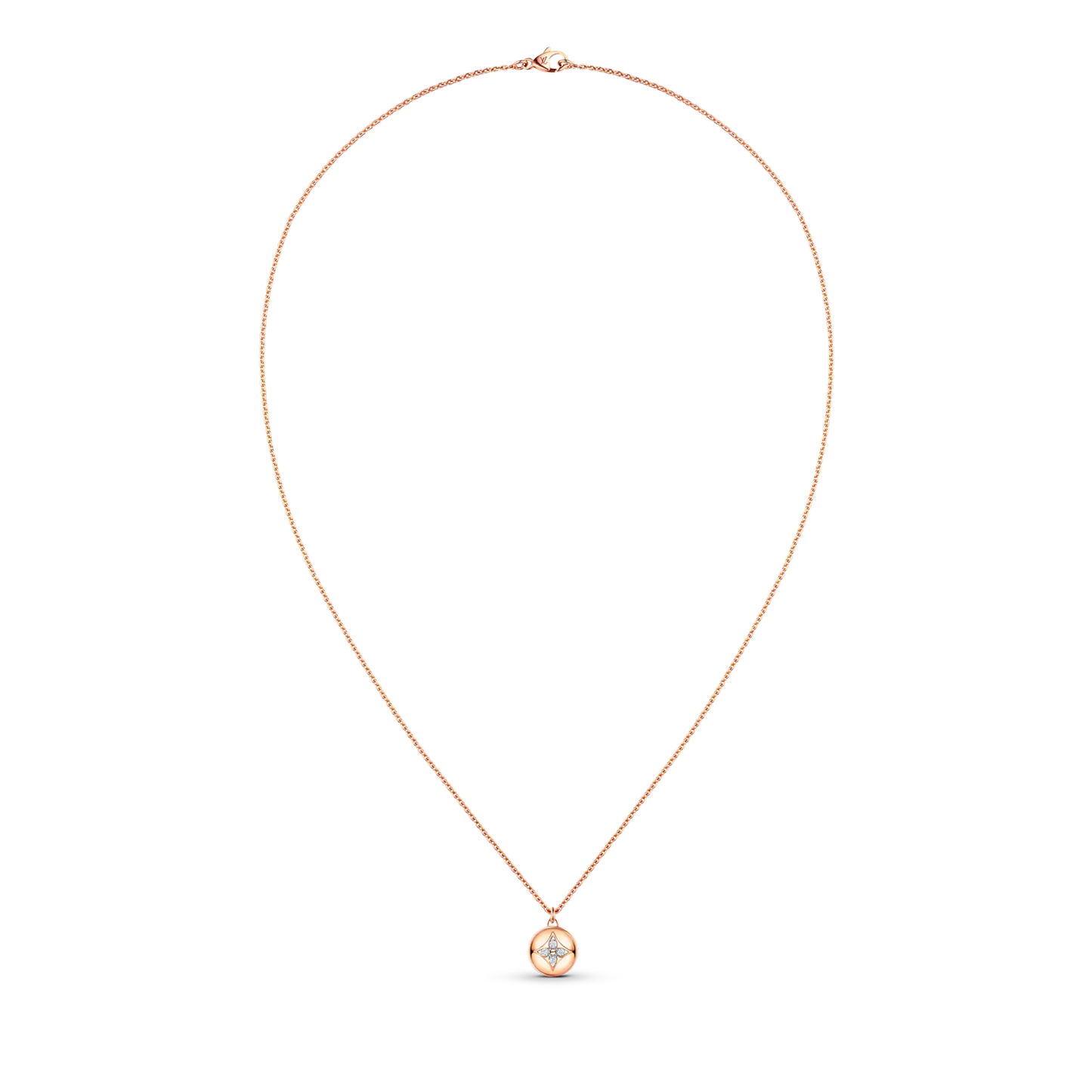 This necklace from the B Blossom range is cast from 18-kt pink and white gold. Suspended from the delicate chain is the collection’s signature motif: a Monogram Flower formed of four glistening diamonds, set in a rounded pink-gold pendant. Feminine and beautifully crafted, this jewel catches the light and sparkles brilliantly with every move.