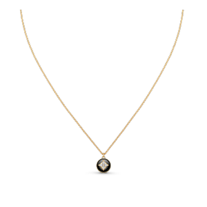 An eye-catching jewel from the B Blossom range, this medallion necklace is cast from 18kt yellow and white gold. It is strung with the collection’s signature motif: a Monogram Flower formed of sparkling diamonds, set here within two half-spheres of polished black onyx. With its adjustable chain, the pendant can be layered with other pieces for a stylish stacked effect.